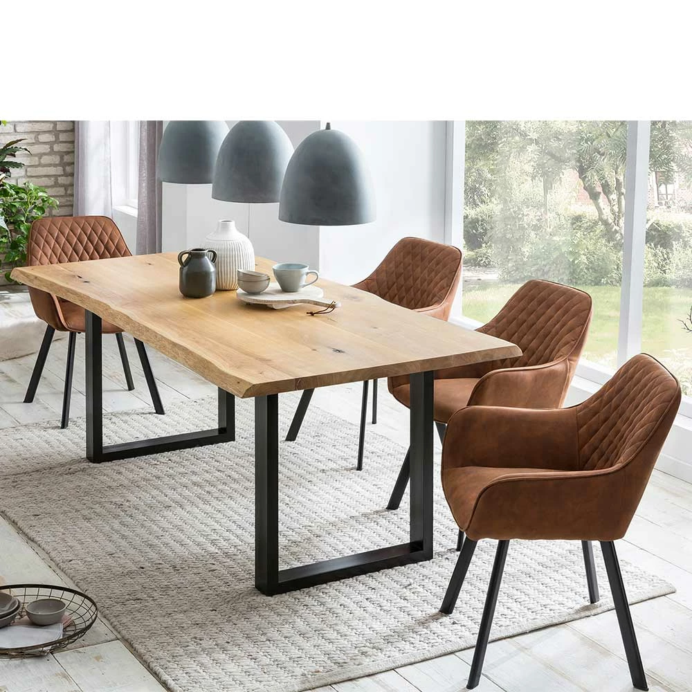- Die ausdrucksstarke Maserung, Asteinschlüsse und Risse sind charakteristische Merkmale, die bei jedem Tisch anders ausfallen