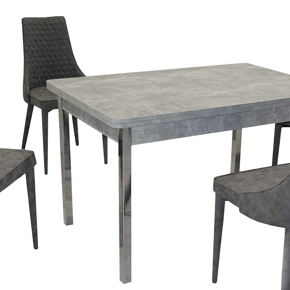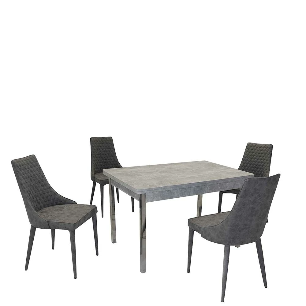 - Kompakte Esszimmergrupe in Dunkelgrau, Chromfarben und Beton Optik