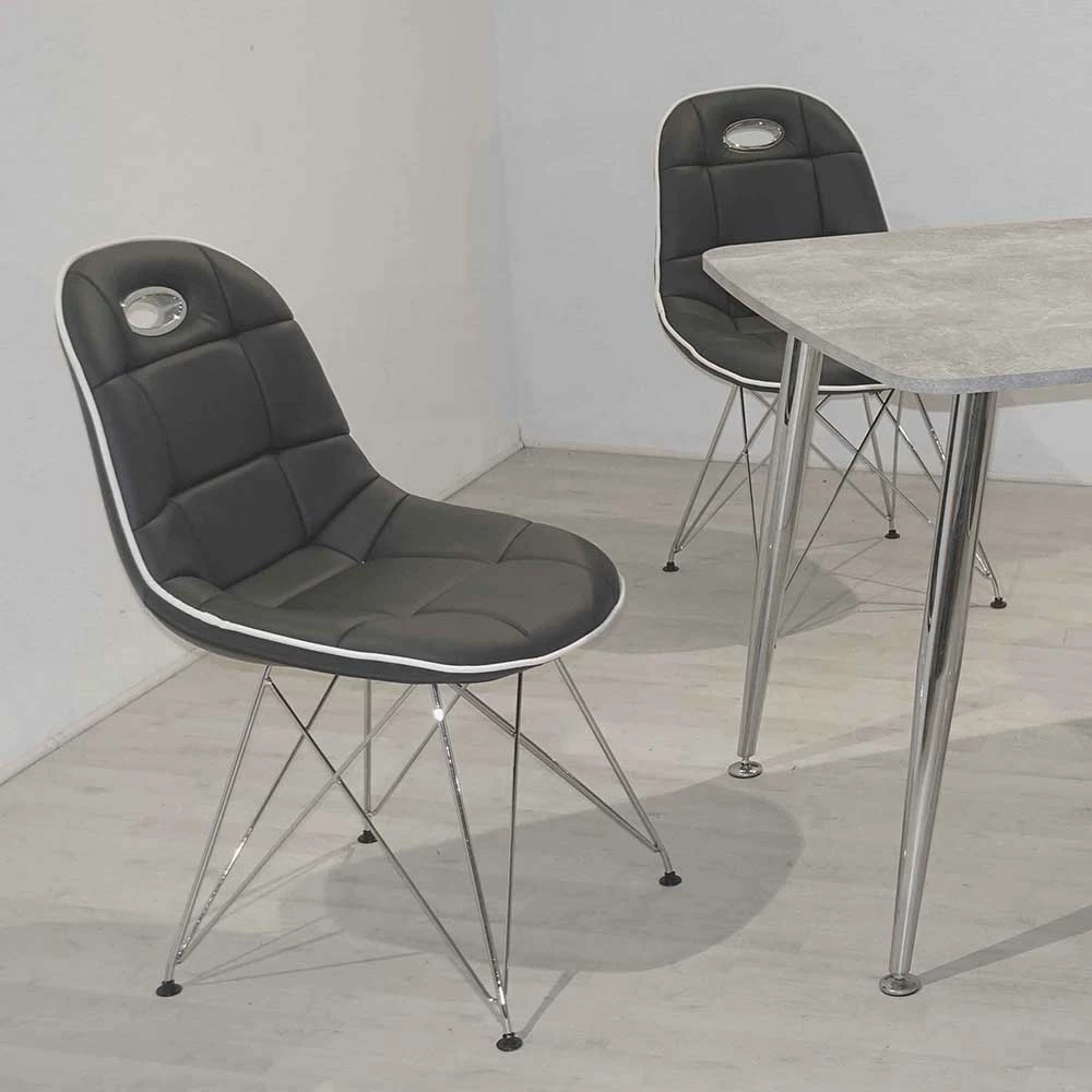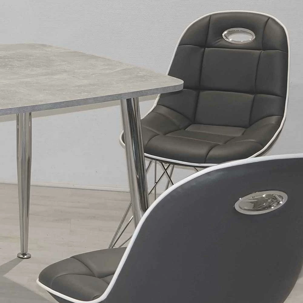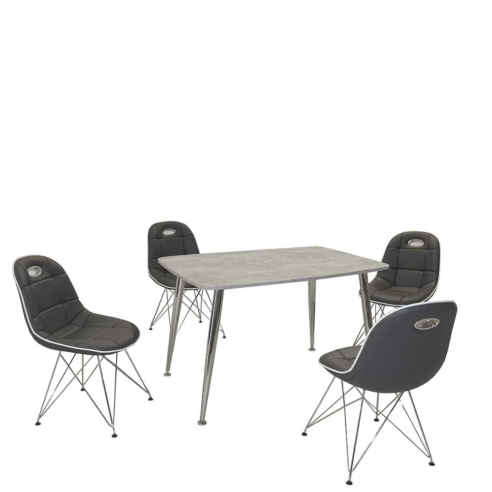 - Topaktuelle Sitzgruppe in Chromfarben, Dunkelgrau und Beton Optik