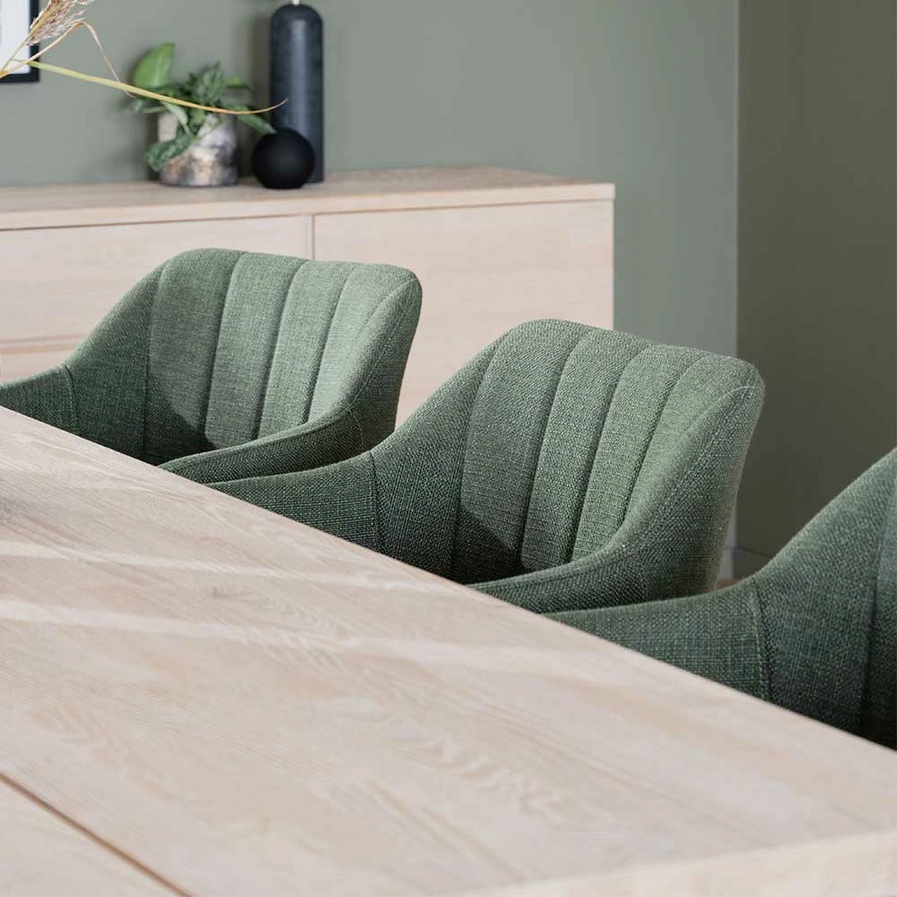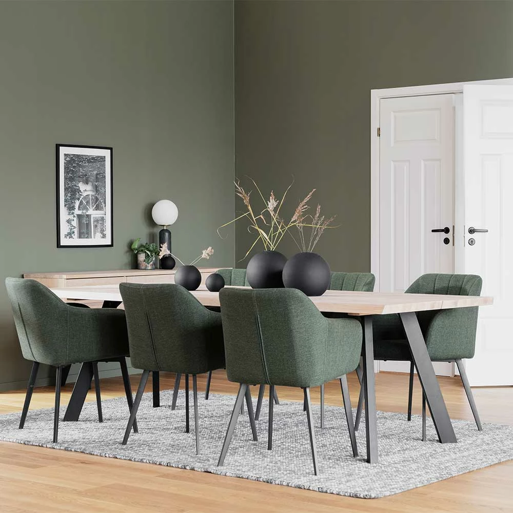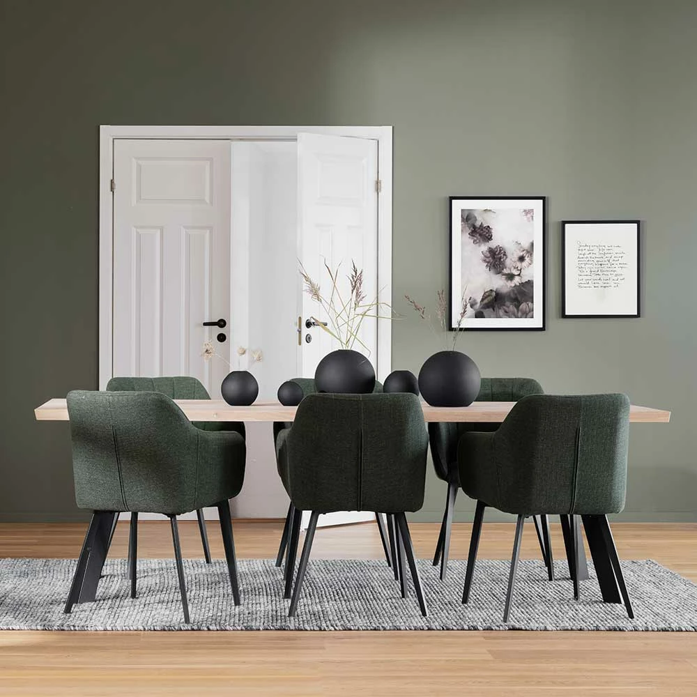 - Herausragende Esszimmergarnitur in Eiche White Wash, Dunkelgrün und Schwarz