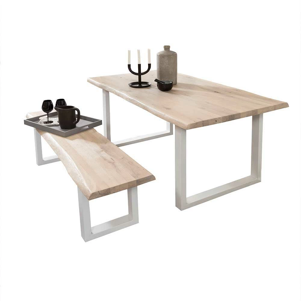 Brandneu ✔️ Baumkante Esstisch & Bank In White Wash – Tilveta (zweiteilig) ?