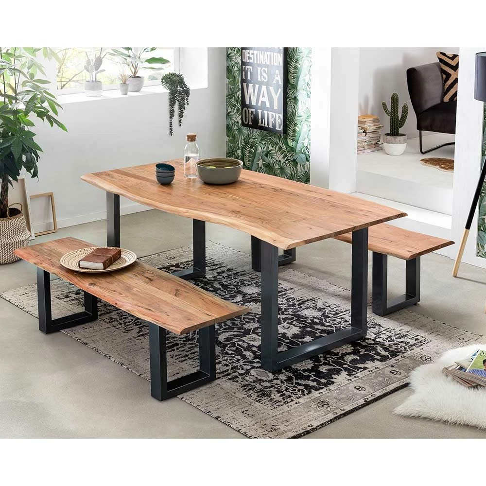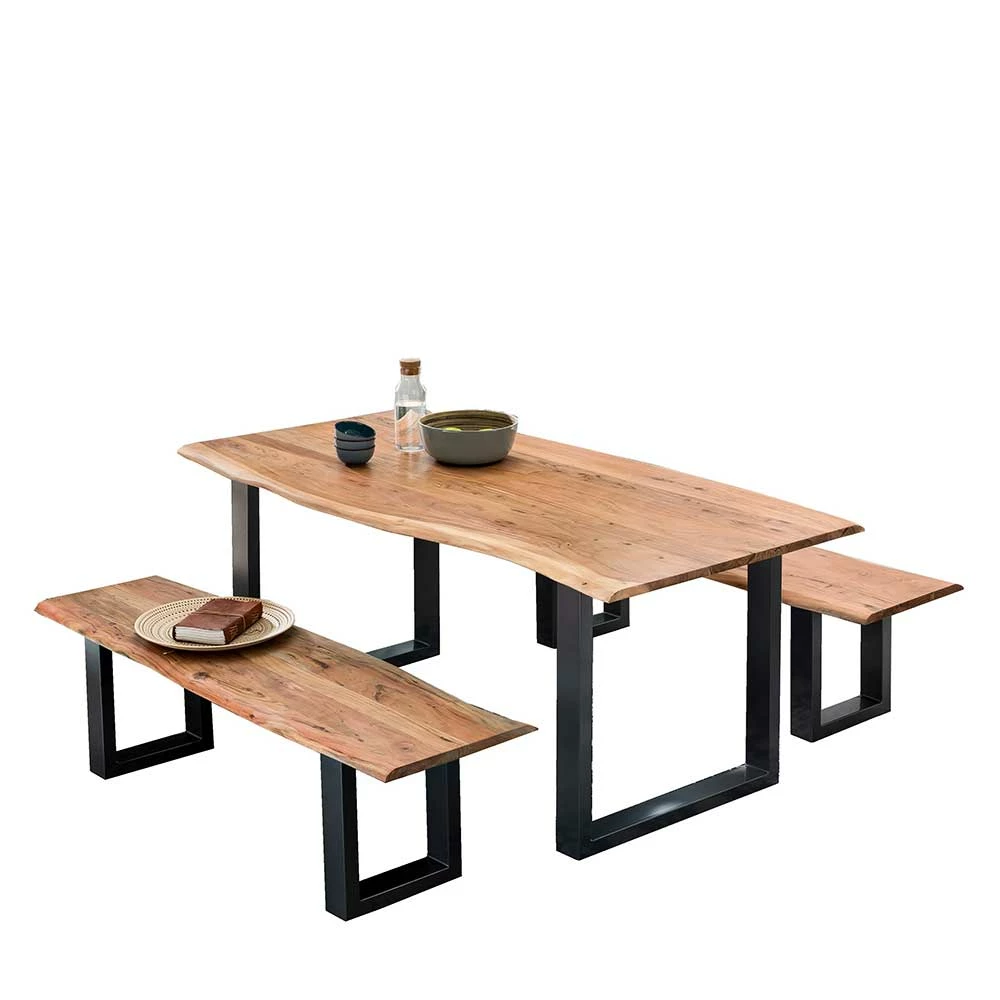 - Robuste Sitzgruppe in Akazie Naturfarben und Antikschwarz