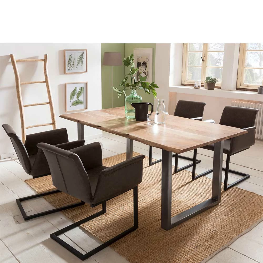 - Topaktuelle Sitzgruppe in Dunkelbraun, Schwarz, Akazie- und Silberfarben