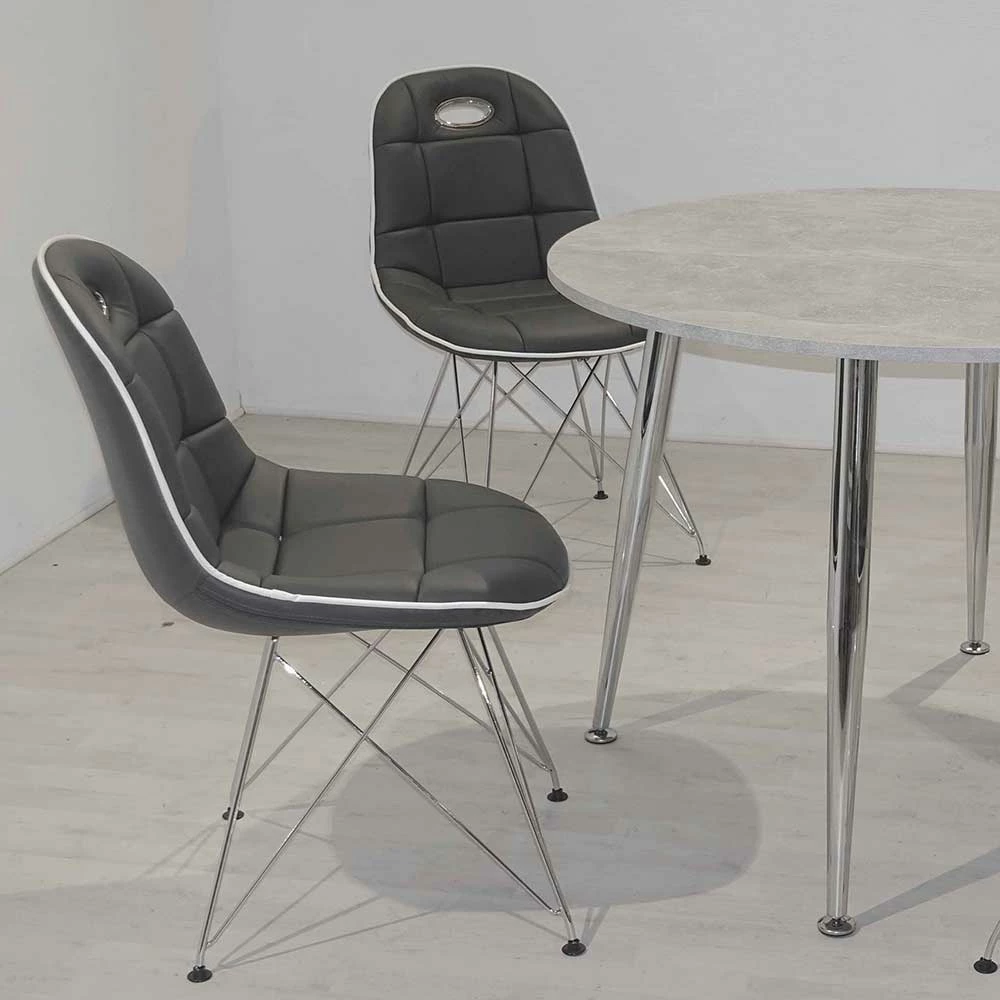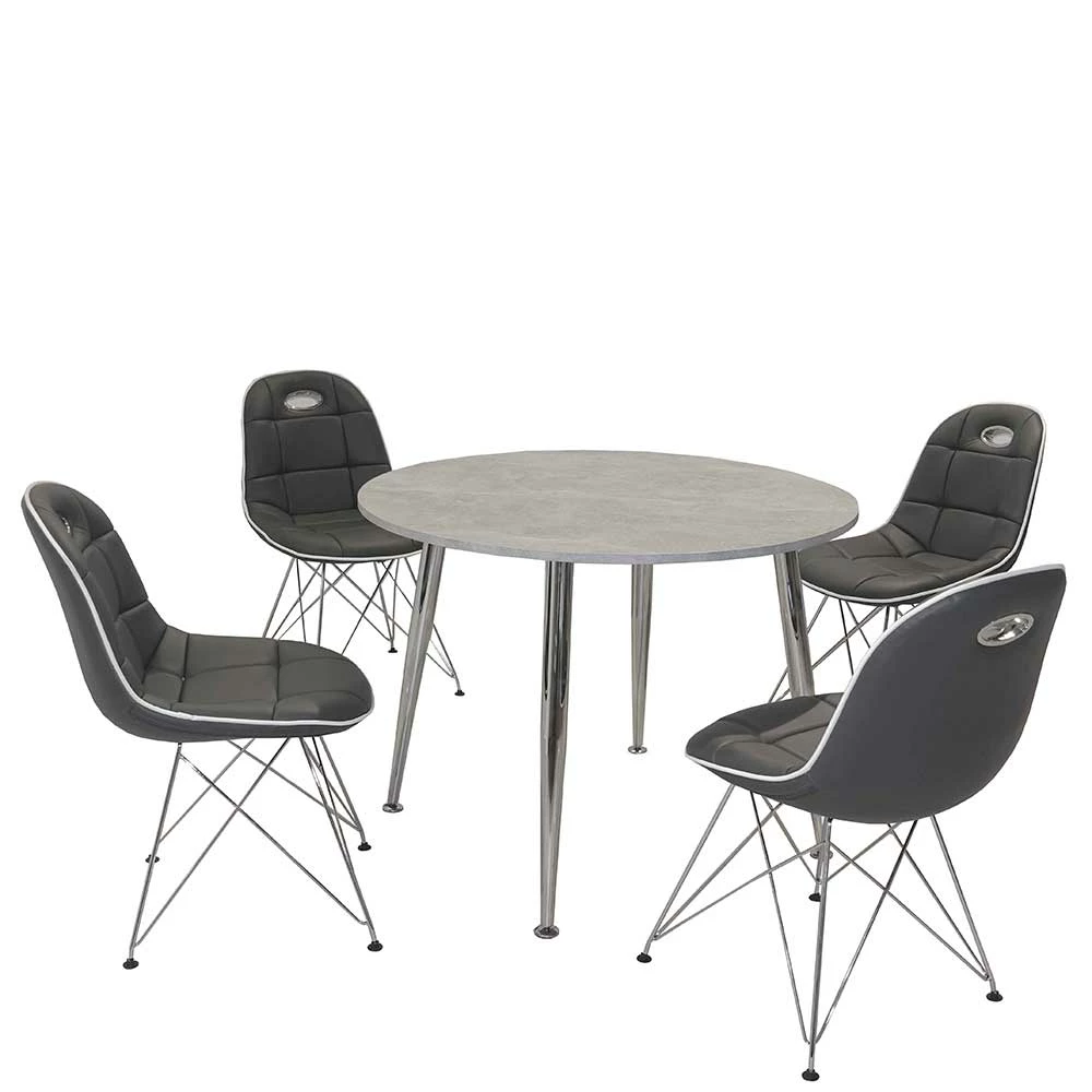 - Kompakte Sitzgruppe in Dunkelgrau, Chrom und Beton Grau