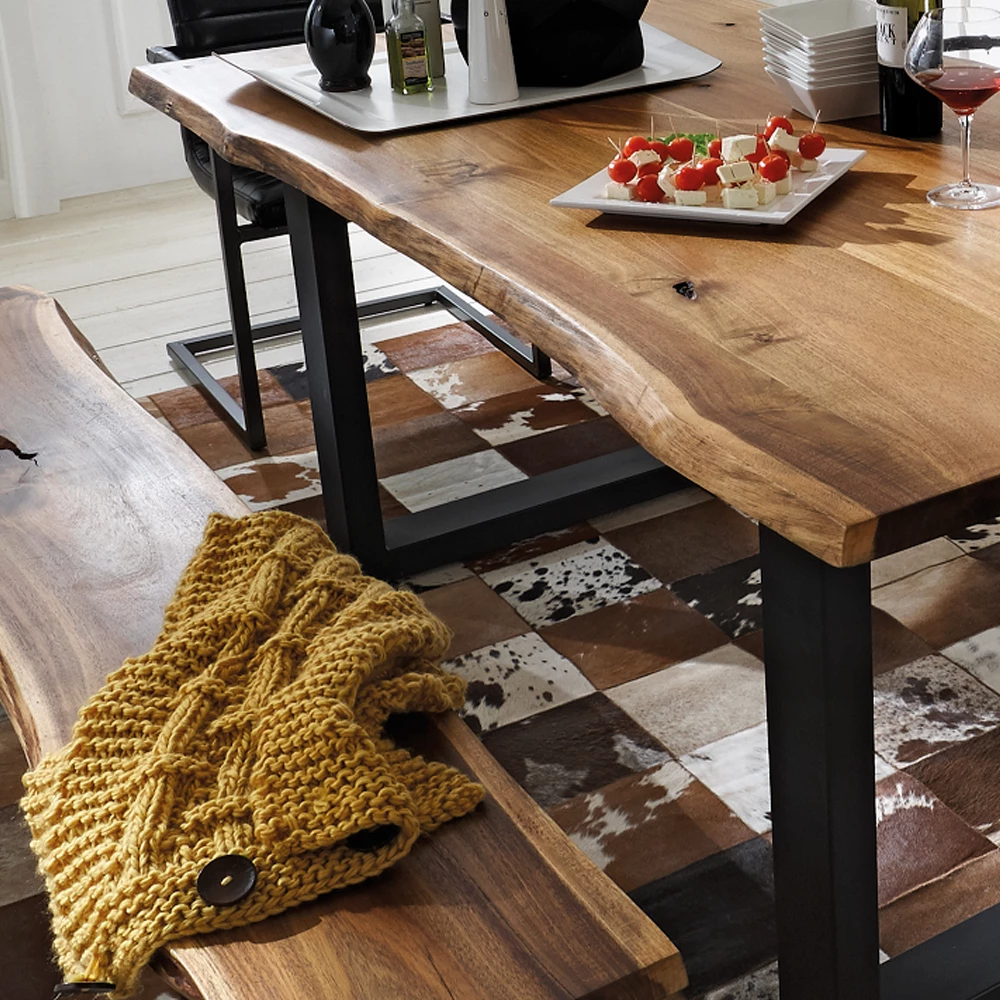 - Jedes Möbel ist ein Unikat: Baumkantenausprägung, Oberfläche und Maserung sind bei jedem Tisch etwas unterschiedlich