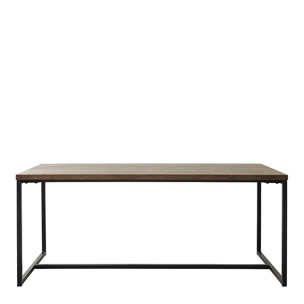 - Spanplatte Oberfläche mit Wildeiche echtholzfurniert, gebürstet und rauchfarbig lackiert, Metall in Schwarz lackiert
