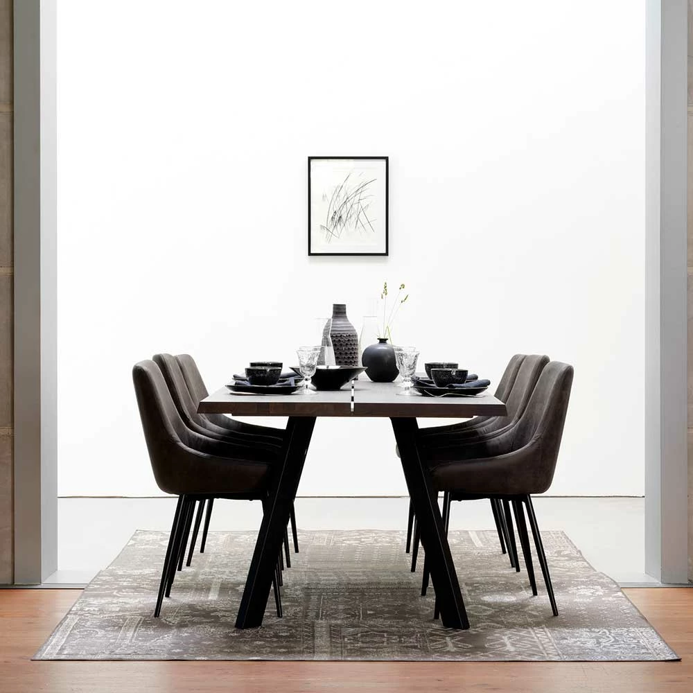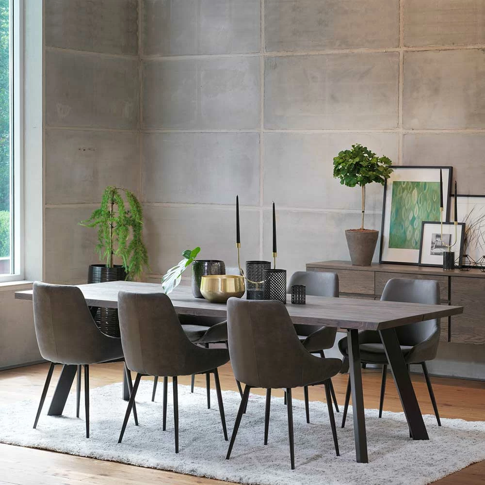Bester Verkauf ? Eiche Rauchfarben Tisch & 6 Stühle Namac In Dunkelgrau (siebenteilig) ?
