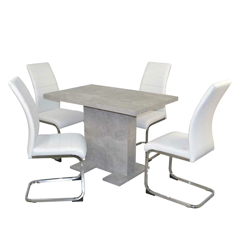 - Schicke Essgruppe in Weiß, Chromfarben und Beton Grau