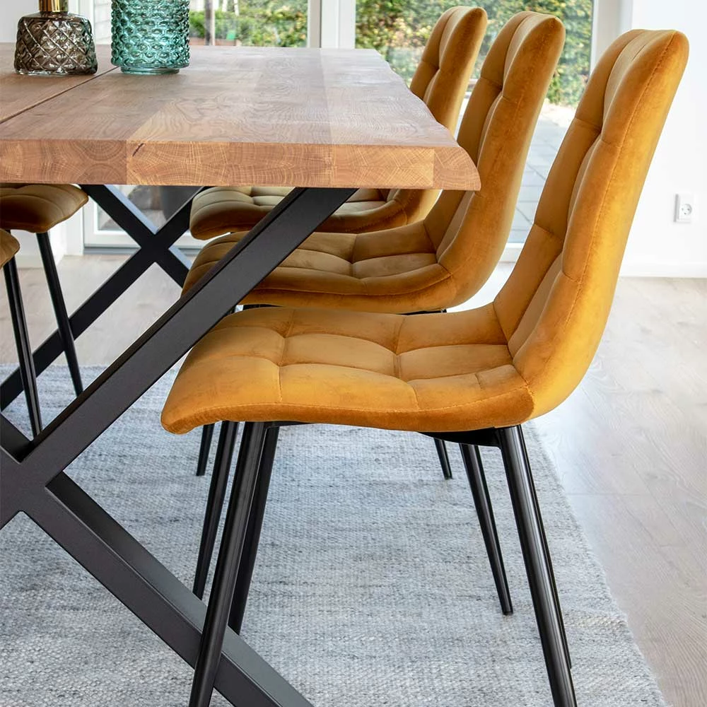 - Exzellente Esszimmergruppe in Ockergelb, Eichefarben und Schwarz