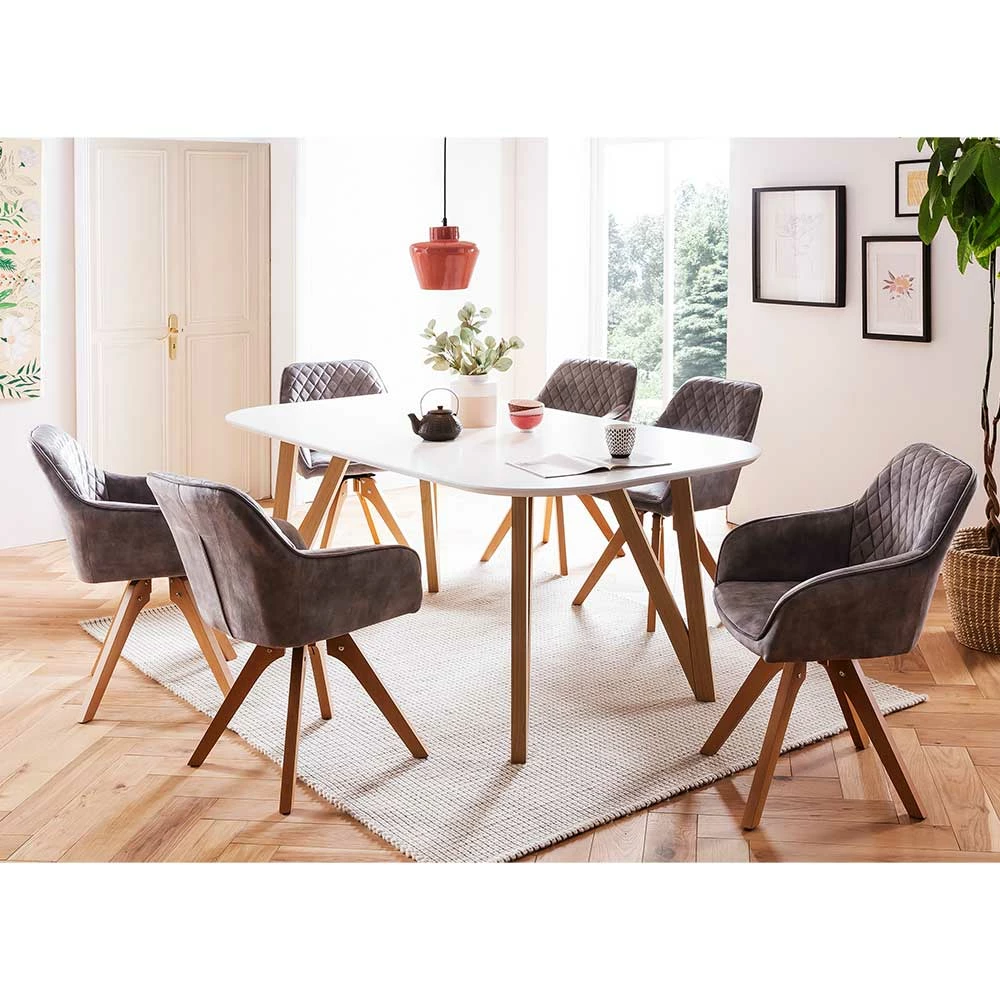 - Anspruchsvolle Esszimmergruppe in Hellgrau, Weiß und Eichefarben