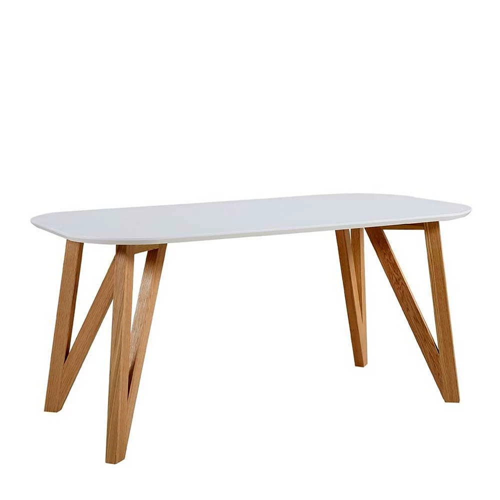 - Schräg gestelltes Vierfußgestell aus massivem Buchenholz in Eichefarben