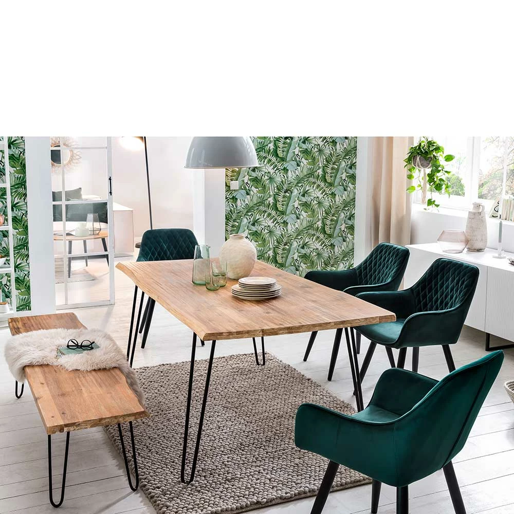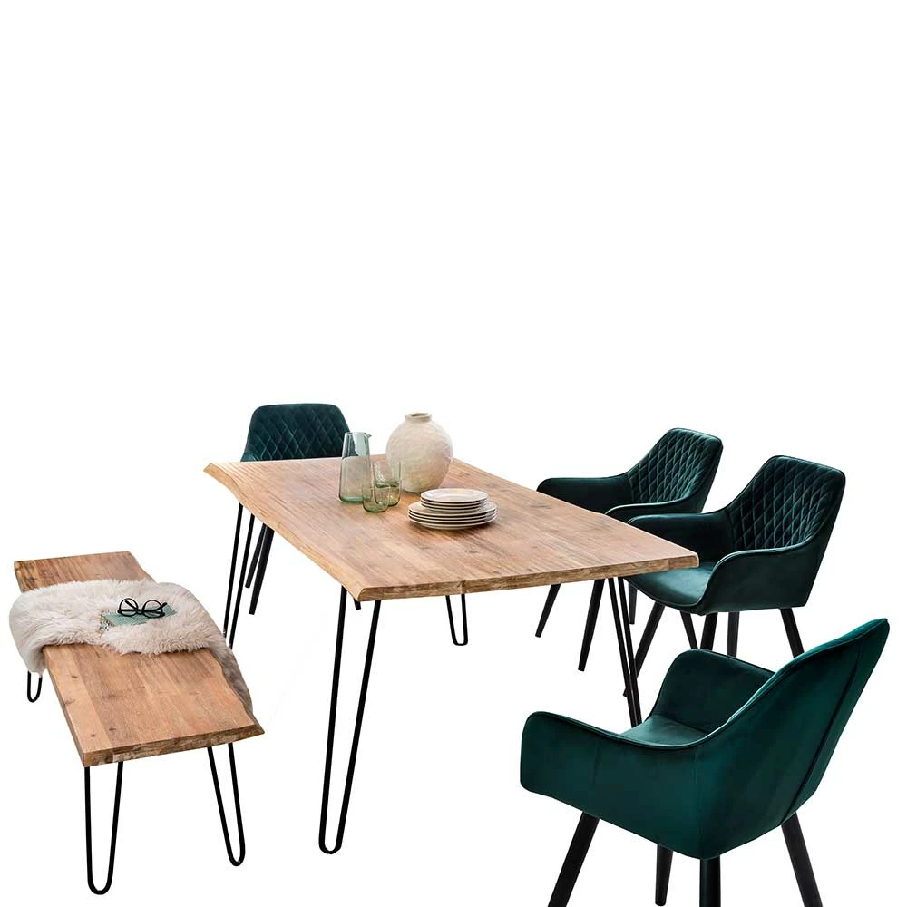 - Moderne Essgruppe in Akazie White Wash, Schwarz und dunkel Grün