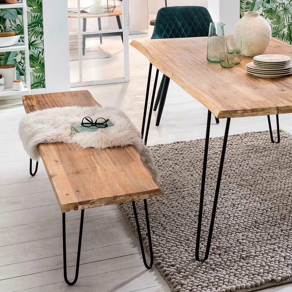 - Die Tiefe bei Bank und Tisch ist ein gemittelter Wert und bei jedem Möbelstück unterschiedlich, Farbe und Struktur können ebenfalls variieren, da aus dem Baum geschnitten, wie gewachsen