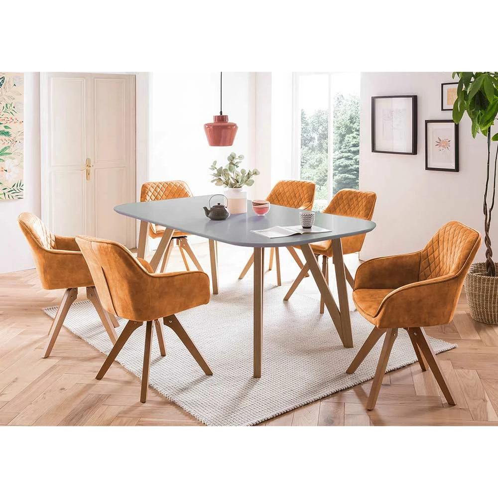 - Ansprechende Esszimmergruppe in Grau, Gold- und Eichefarben
