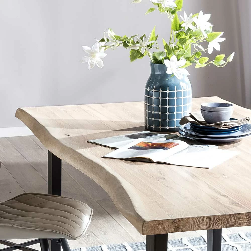 - Holzoberfläche geölt mit White-Wash Effekt, Metallgestelle pulverbeschichtet in Schwarz matt