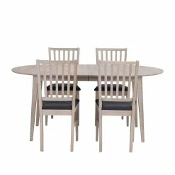 Coupon ? Ovaler Esstisch Eiche White Wash & 4 Stühle Pessoa Mit Webstoff Grau (fünfteilig) ?