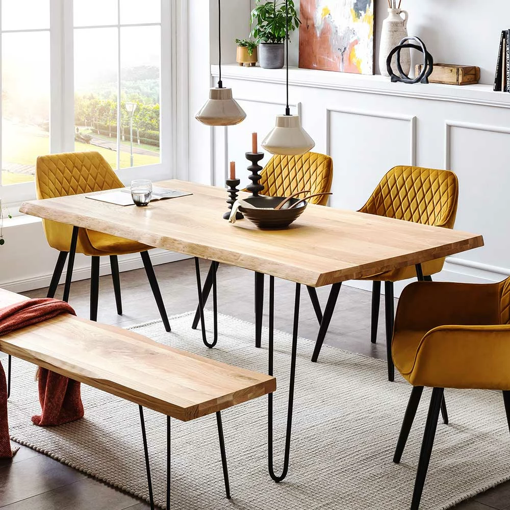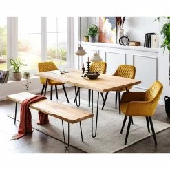 Coupon ? Hairpin Legs Tisch & Bank Plus 4 Stühle – Yordyn (sechsteilig) ?