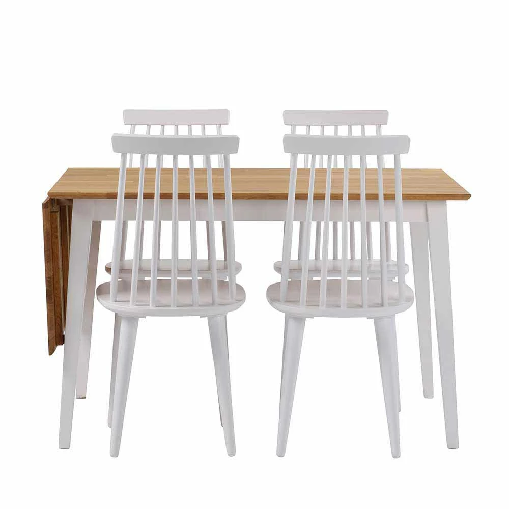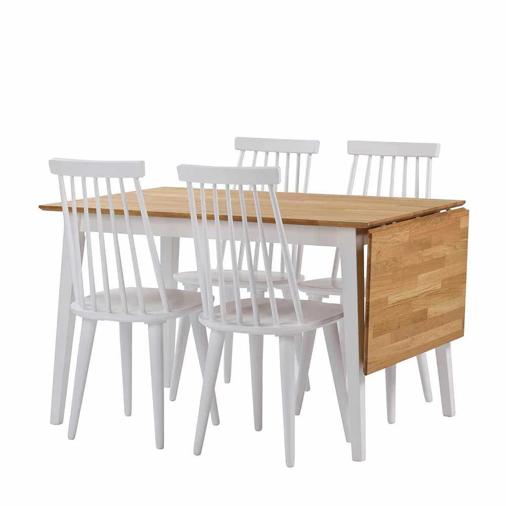 Billig ⌛ Holz Tischgruppe In Weiß Eiche – Vanira (fünfteilig) ❤️