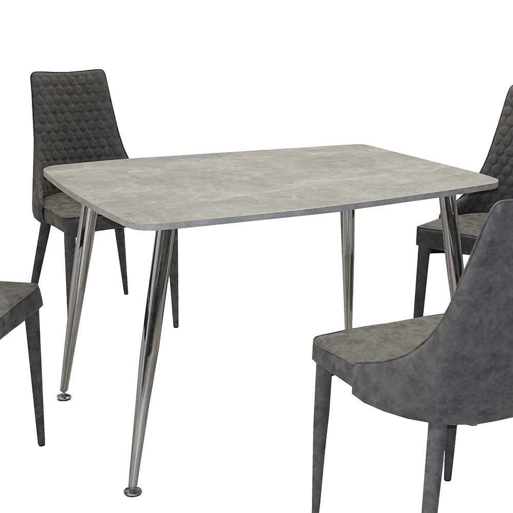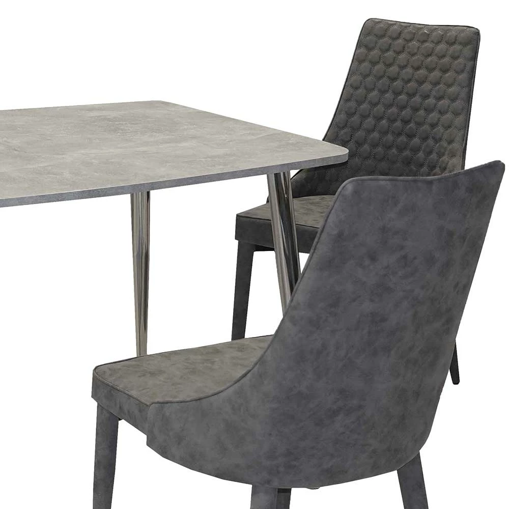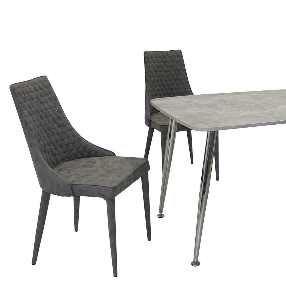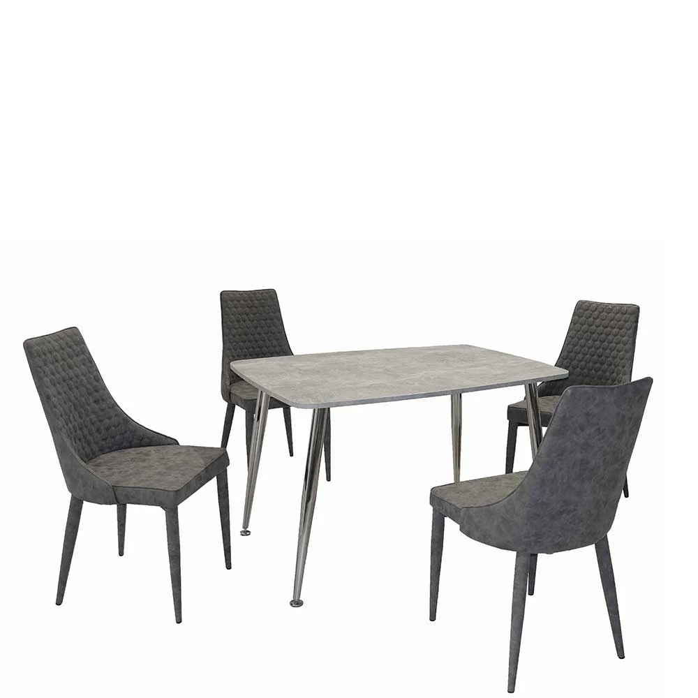 - Kompakte Esstischgruppe in Dunkelgrau, Chromfarben und Beton Optik