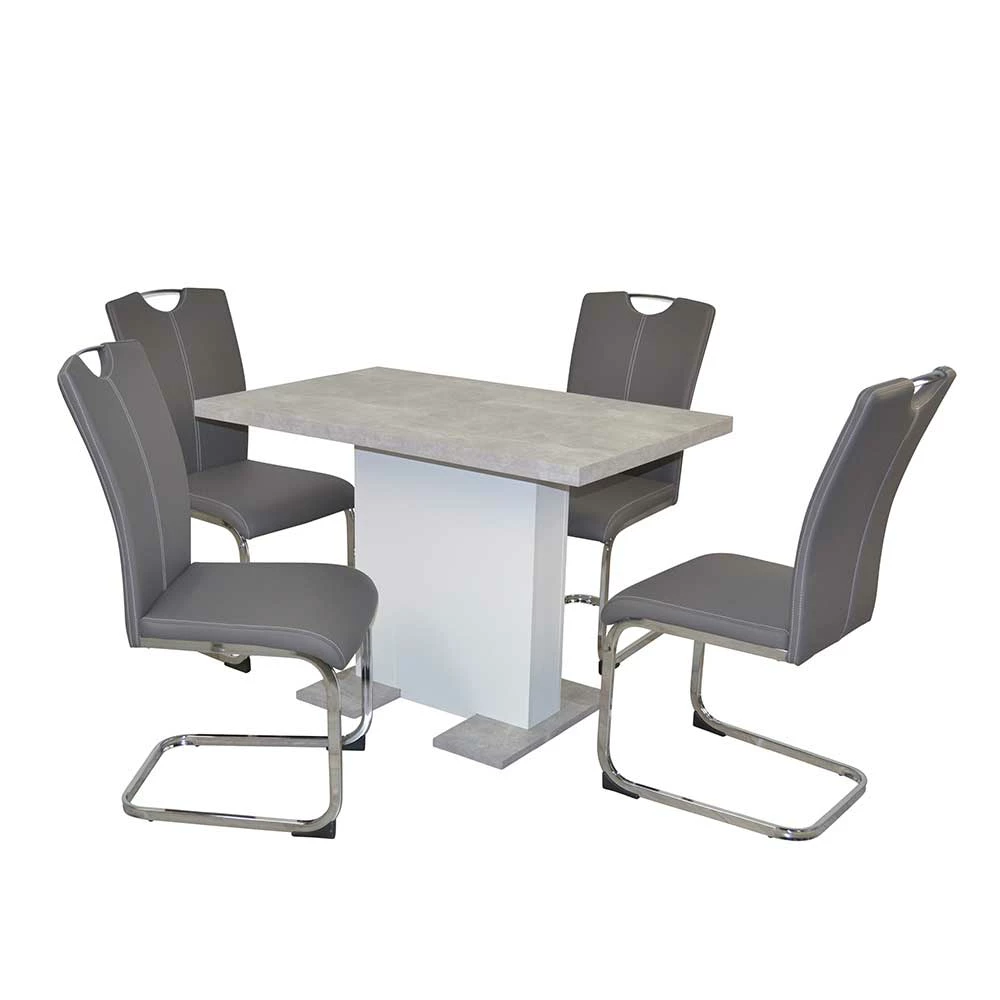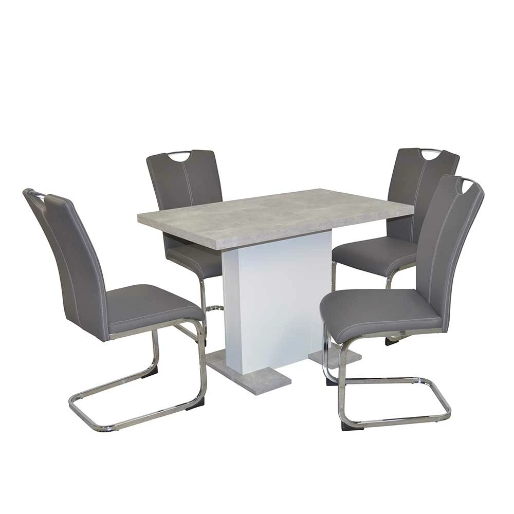 - Solide Essgruppe in Grau, Beton Optik, Chromfarben und Weiß