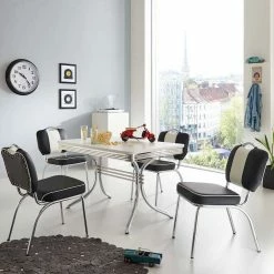 Blitzangebot ❤️ Kunstleder Retro Stühle & Tisch Barataria In Schwarz Weiß (fünfteilig) ?