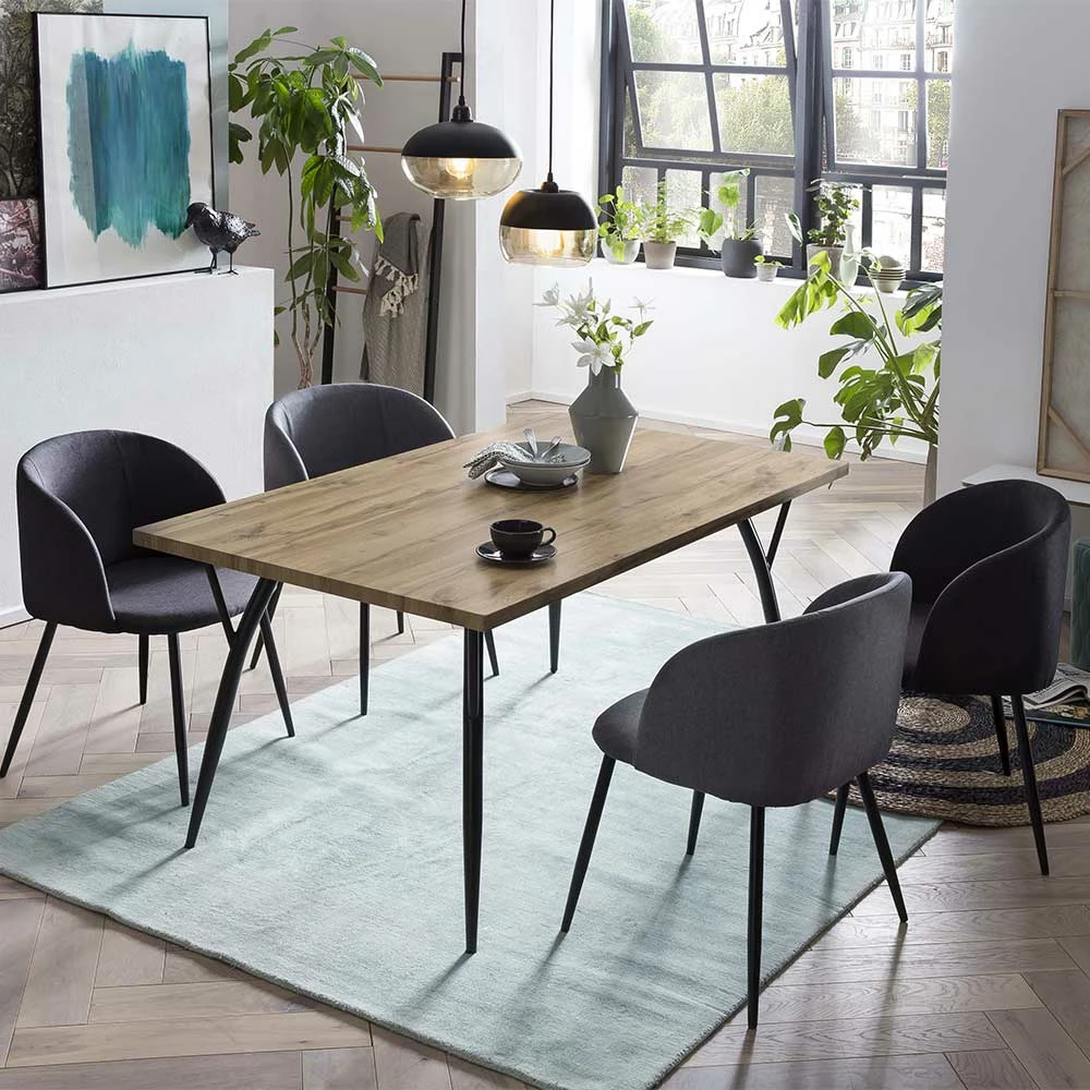 - Gemütliche Essgruppe in Eichefarben, Hell- und Dunkelgrau sowie Schwarz