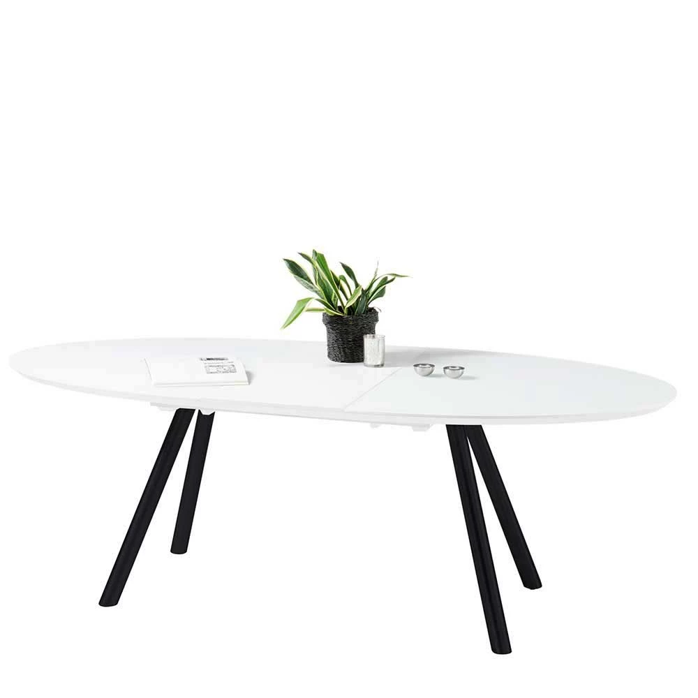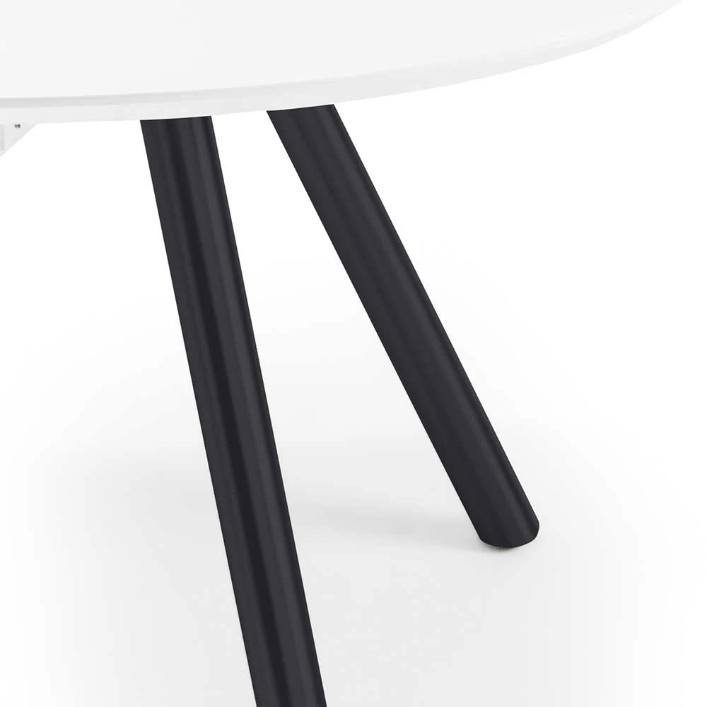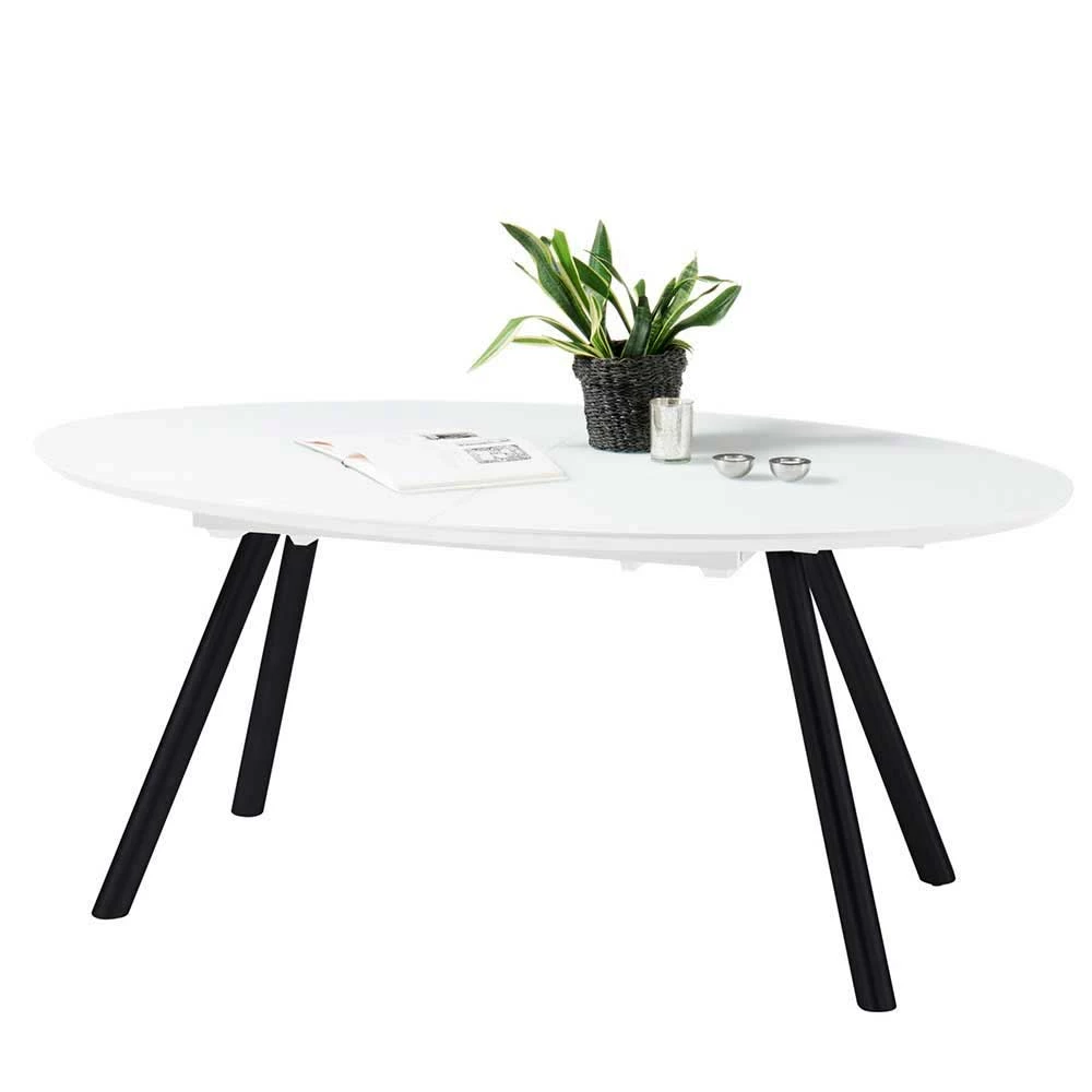 - Lackierte Oberflächen, Tischplatte weiß und mit Glas beschichtet, Gestelle schwarz
