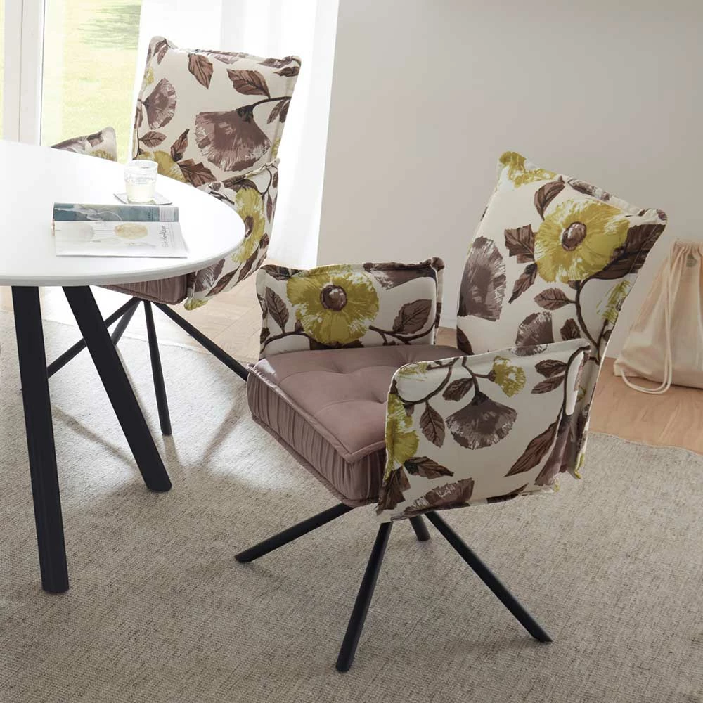 - Rücken- und Armlehnen in floralem Muster, Sitzflächen in Altrosa