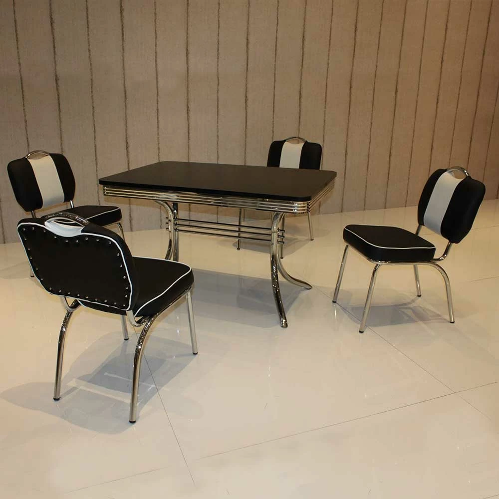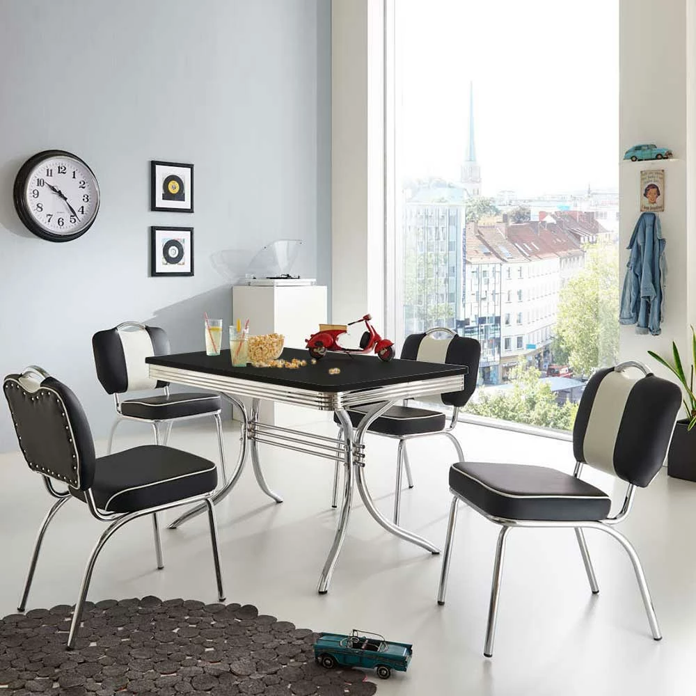 Bestpreis ? Retro Tischgruppe Schwarz Weiß Barataria American Diner (fünfteilig) ?