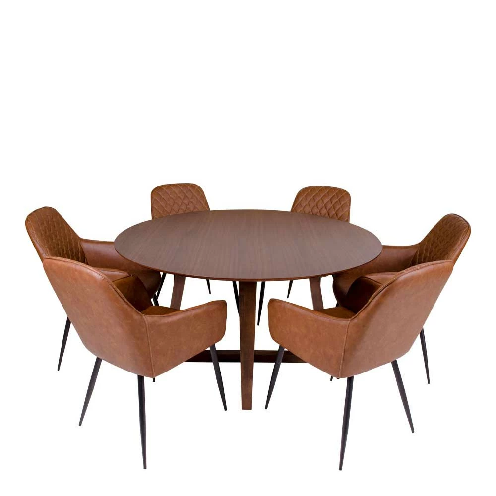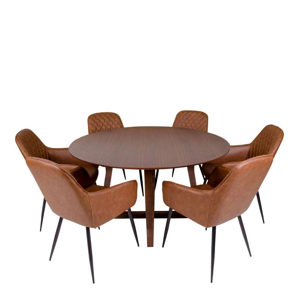 Schlussverkauf ? Runde Design Tischgruppe In Braun – Annescu (siebenteilig) ✔️