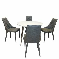 Bestpreis ? Runde Tischgruppe Woodstock Mit Kunstleder Polsterstühlen Grau (fünfteilig) ?
