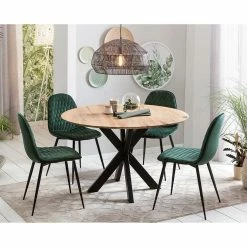 Angebote ? Runder Eichenholz Tisch & 4 Stühle – Violcan (fünfteilig) ?