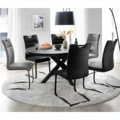 Bestes Angebot ? Runder Tisch & Leder Schwingstühle – Morvon (siebenteilig) ?
