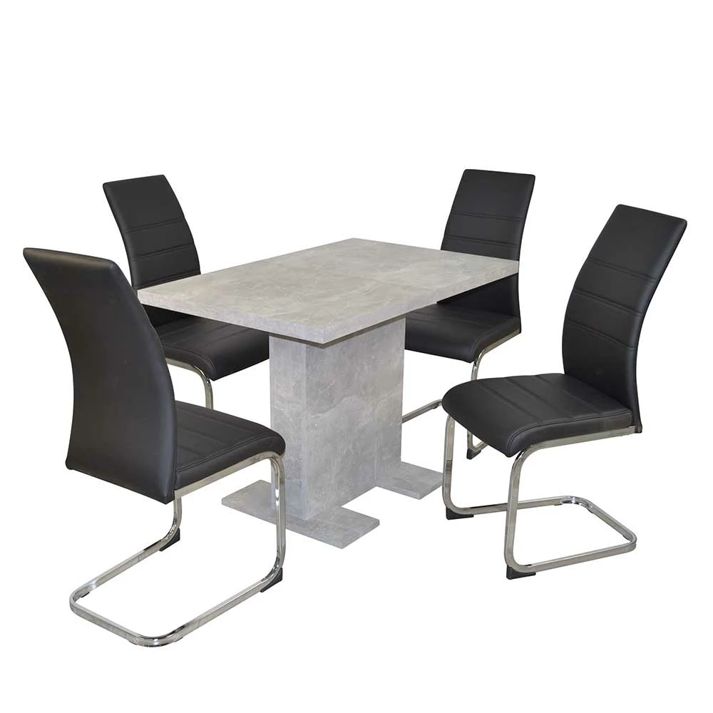 - Trendige Essgruppe in Betongrau, Schwarz und Chromfarben