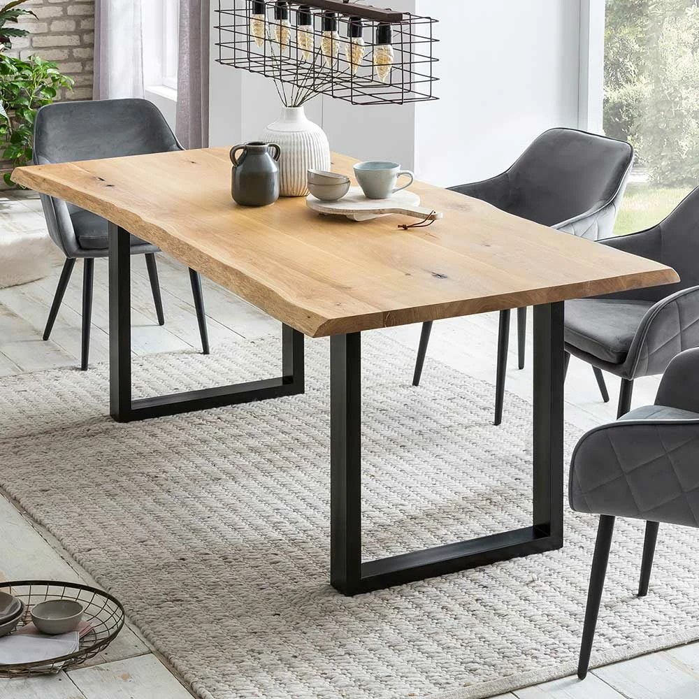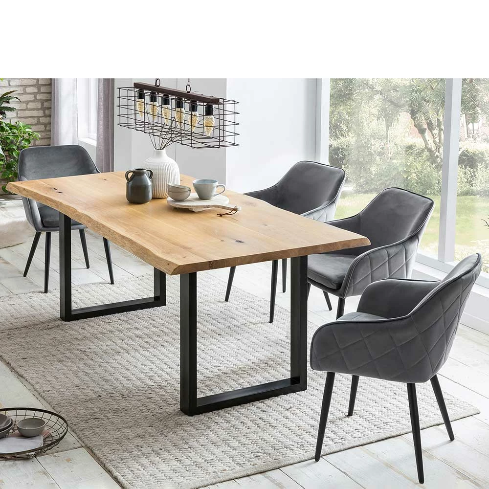 - Die ausdrucksstarke Maserung, Asteinschlüsse und Risse sind charakteristische Merkmale, die bei jedem Tisch anders ausfallen