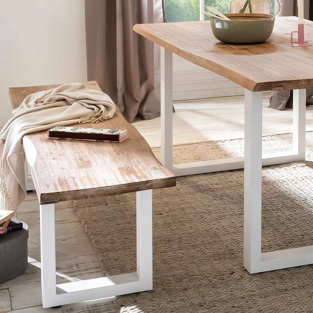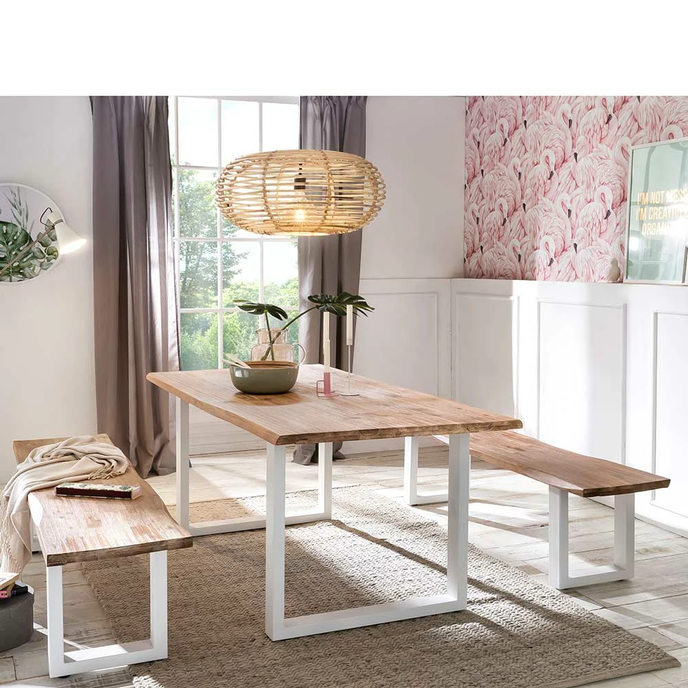 - Moderne Tischgruppe in Weiß und Akazie White Wash