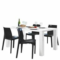Neu ? Weißer Hochglanz Tisch & Designstühle – Zaruto (fünfteilig) ?