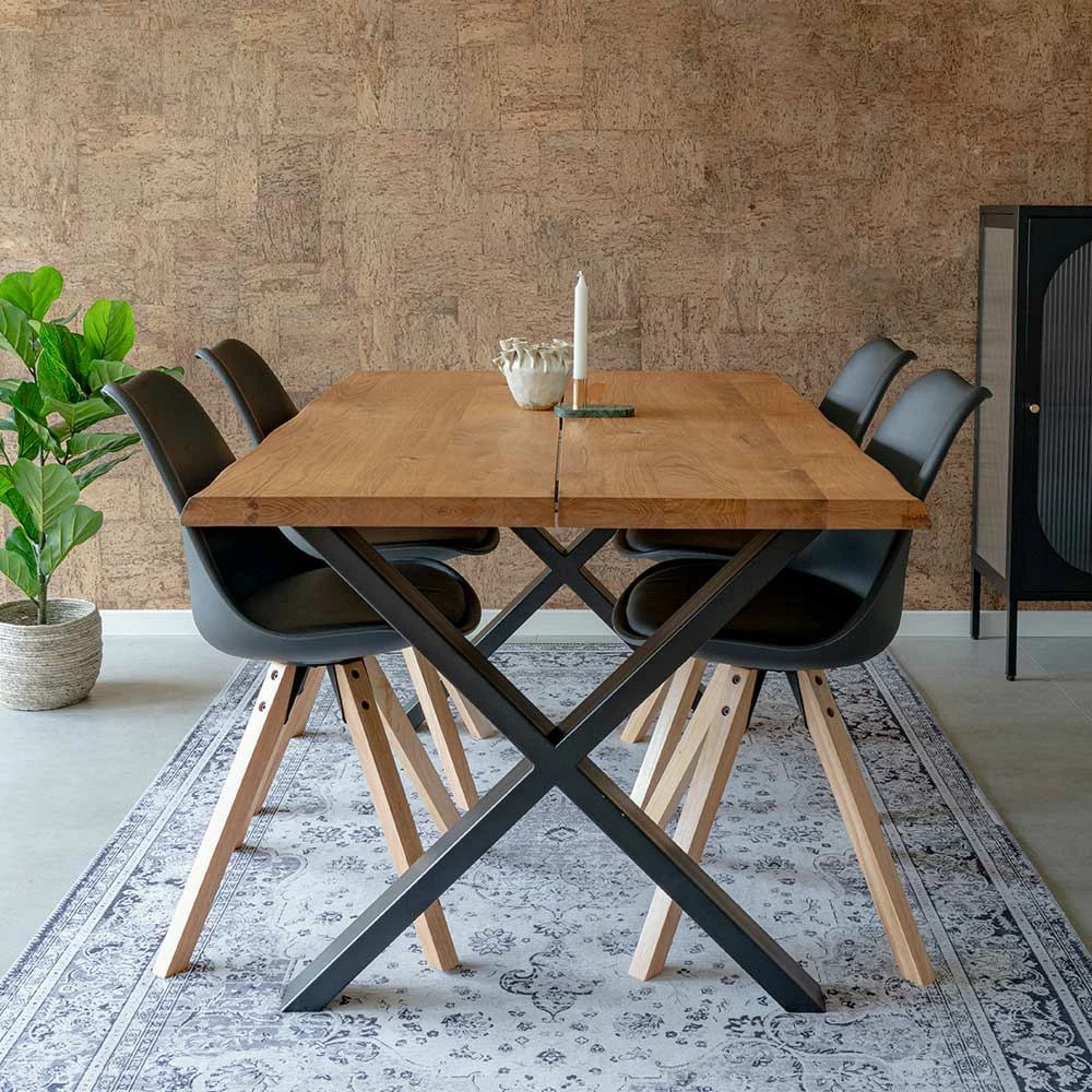 - Schicke Essgruppe in Eiche, Holz Naturfarben und Schwarz