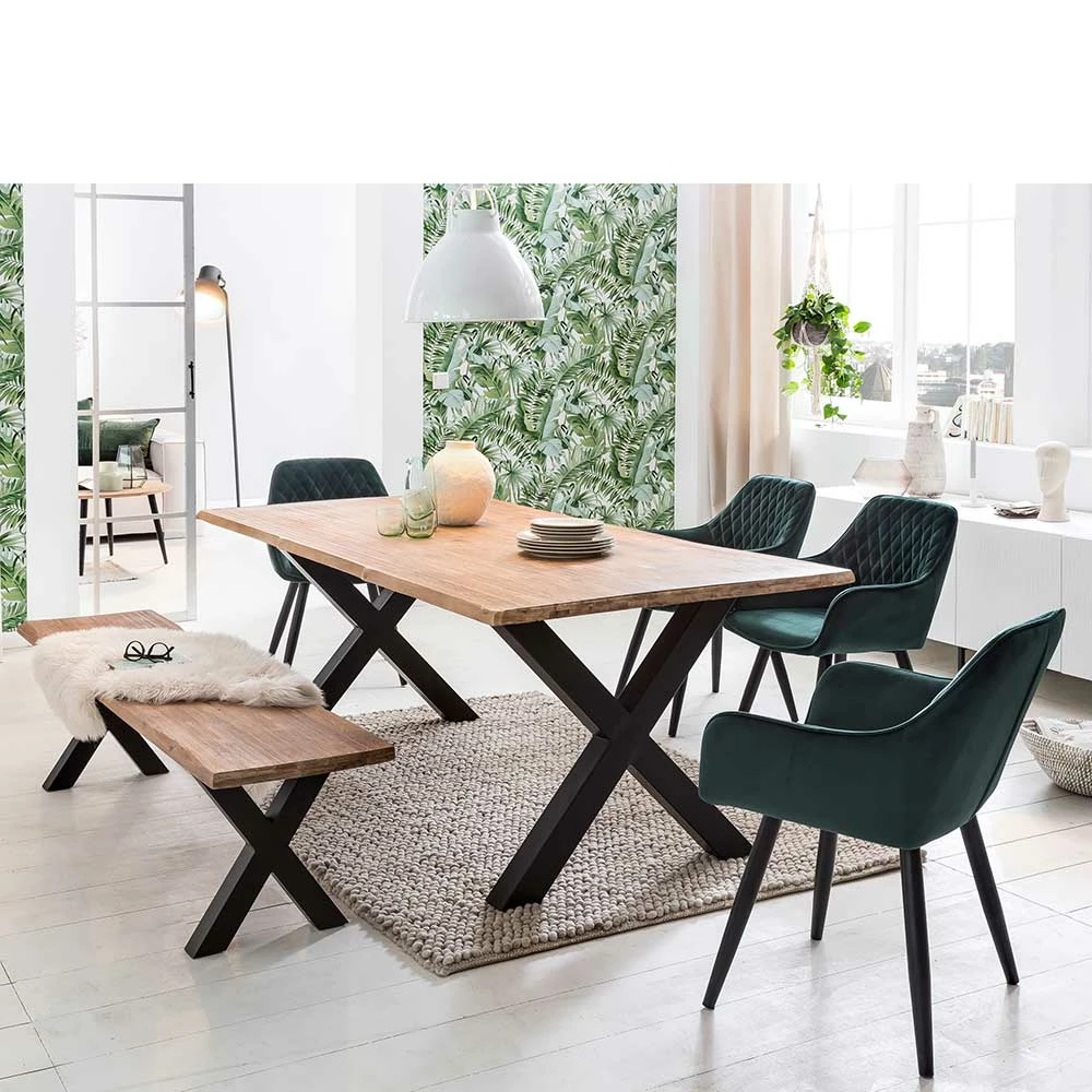 Neu ? X-Gestell Tisch & Bank Plus 4 Stühle – Esvalda (sechsteilig) ⭐